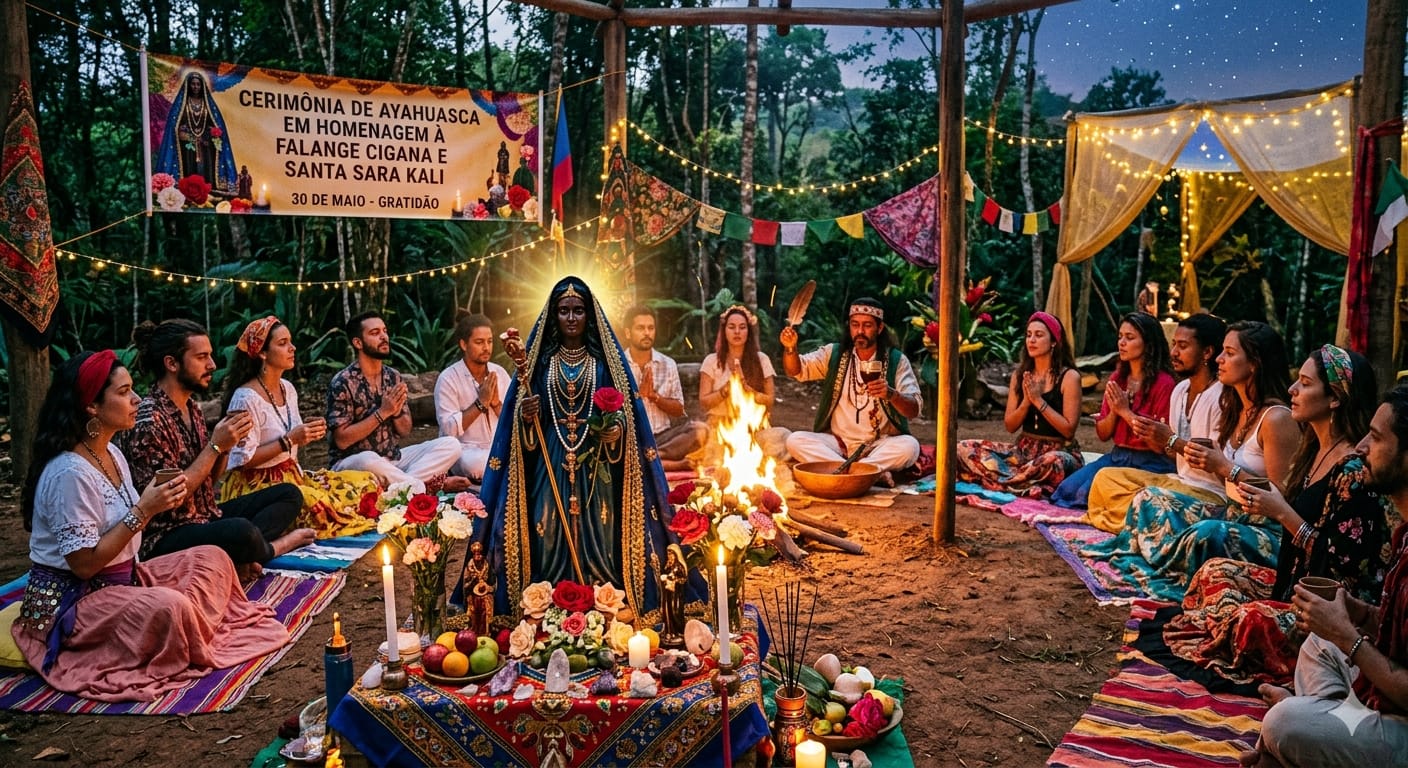 No rastro das estrelas e na força dos caminhos abertos, convidamos você para uma jornada de luz e cura. No dia 30 de maio, nossa cerimônia de Ayahuasca será em honra à vibrante Falange dos Ciganos e à nossa padroeira, Santa Sara Kali.